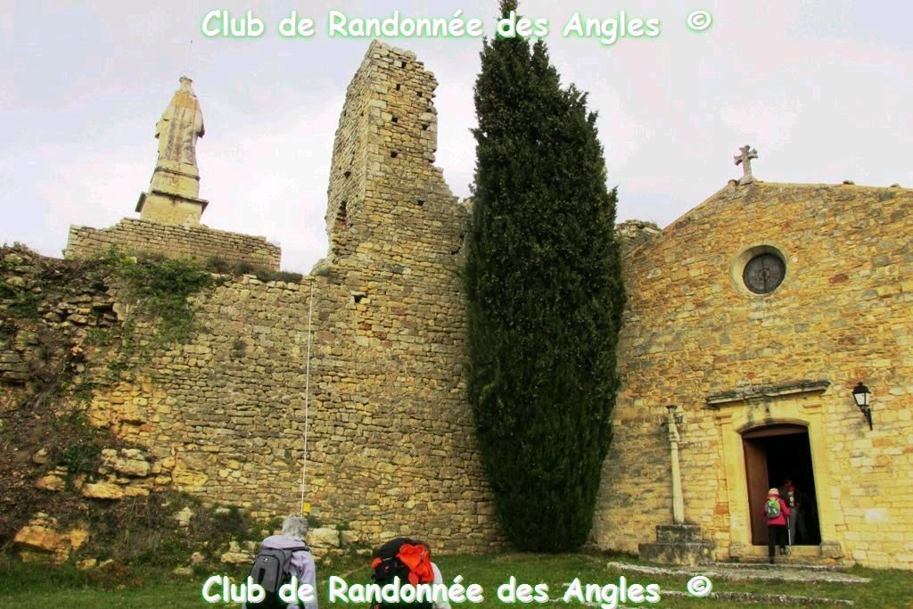 Mais quelle récompense à Sabran : le village, la vue, la chapelle, la vierge, les ruines du chateau. Certains ont eu du mal à en partir !!! Finalement un vent glacial a eu raison de nous, si bien que le retour vers Combe s’est fait « au pas de course » pour certains.