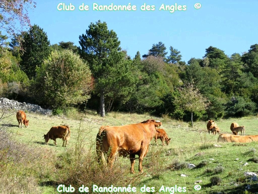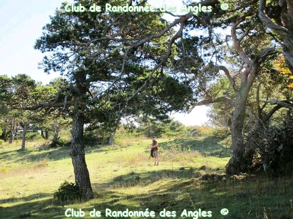 D’abord sur nos pas par le GR9 en passant à nouveau au large de la piste de décollage de parapente (1259m) puis en quittant ce GR9 par la Gauche d’abord dans les prairies, puis dans les cailloux (pénible) à travers le ravin de la « Courrière » puis jusqu’au gite d’étape de « Fontlargias » où nous faisons une courte pause. La descente se fait ensuite dans une belle forêt en contournant le rocher des « Aures » jusqu’au GR9 et retour aux voitures.