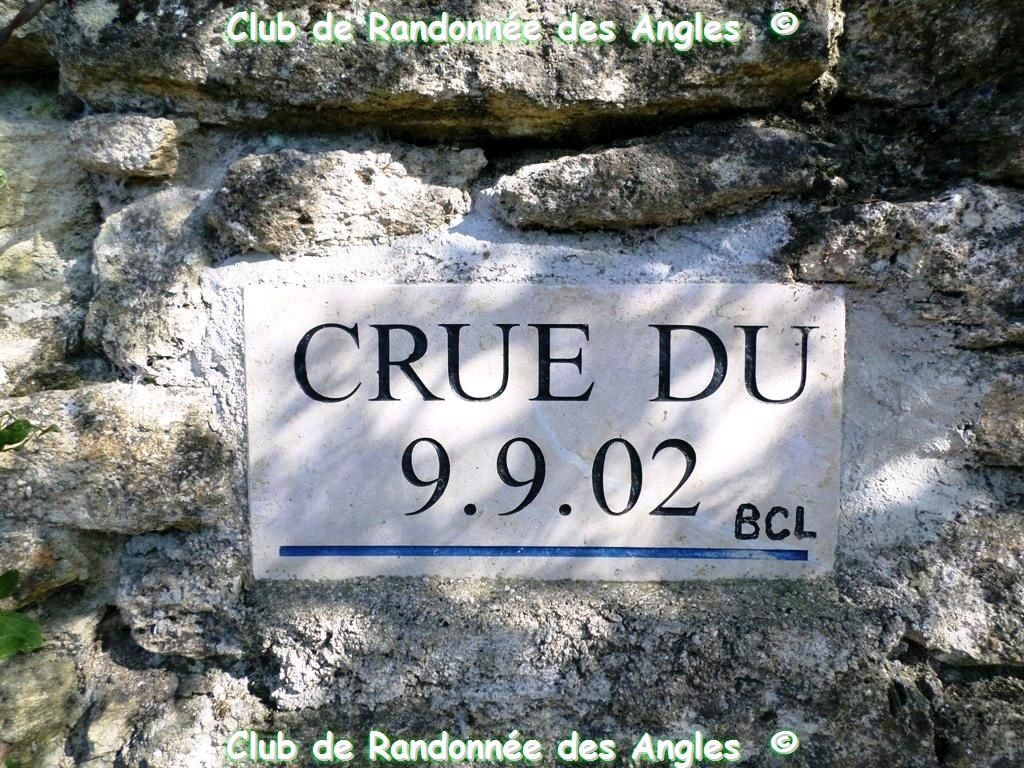 Par le GR 63 nous continuons vers la Bégude St Pierre, en cours de route nous remarquons la plaque - crue 2002 - triste souvenir Aramon, Collias !