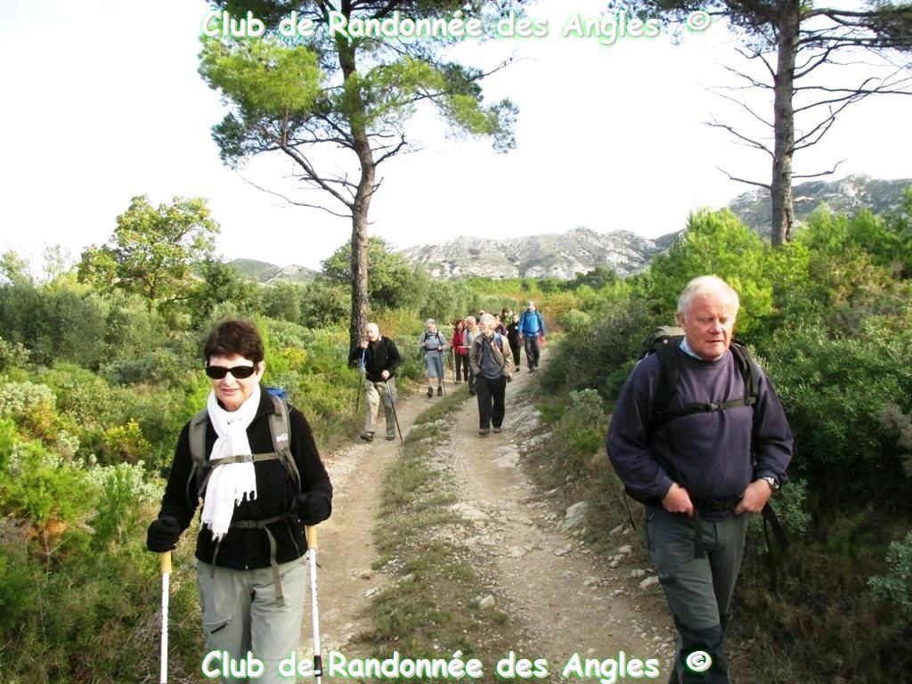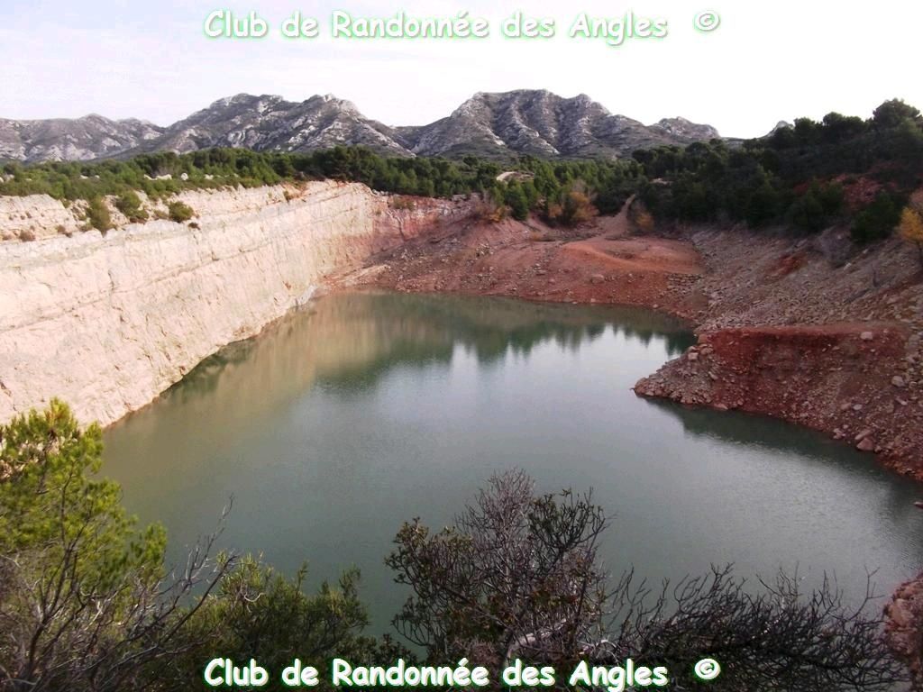 Météo prévue sans pluie et « chaleureuse » avec du soleil et pas de vent, engageante, si bien que l’on se retrouve 27 à partir du Forum, dont 3 « Nouvelles » venues en « Accueil »…On se retrouve après Saint Rémy sur la D5 juste avant l’embranchement des Baux face au Mas de la Dame, à 8 Voitures, ouf on a pu se garer ! On prend la direction du Mas Rouge pour passer devant le lac d’ Entreconque qui n’est qu’une ancienne carrière utilisée comme réservoir d’eau, dont le niveau bas est surprenant compte tenu des pluies récentes... Terre rouge (Bauxite) rocher, falaises, végétation de rocaille, tel est notre départ…