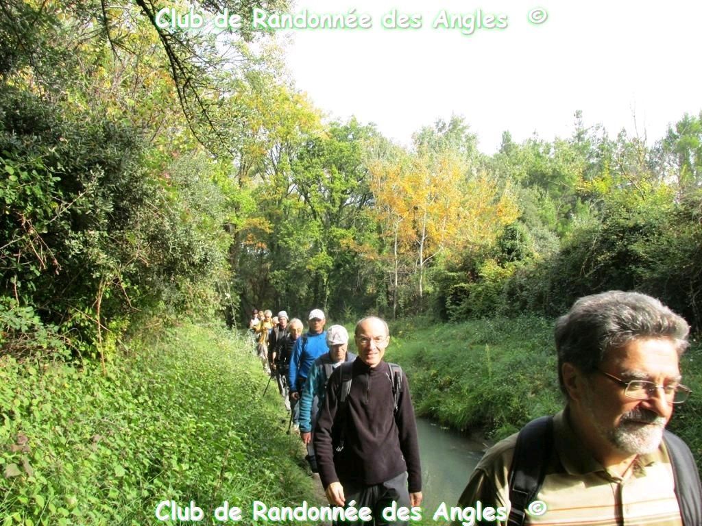 Comptage des brebis fait, nous montons vers le Canal des Alpines, branche d’Eyragues, que nous prendrons vers la droite pour ne pas le quitter jusqu’au Château d’Eyragues.Parcours au fil de l’eau, bucolique, frais, silencieux, en dehors du monde trépidant, mais plein aussi de péripéties (comme pour certains de passer en équilibre sur un tuyau, cependant balisé comme circuit de randonnée) les autres étant passées plus raisonnablement par la petite route.