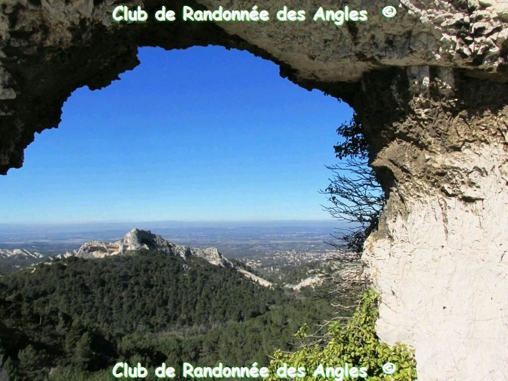 Vers 12h nous arrivons sur le plateau de la Caume et commençons à redescendre. Nous arrivons au rocher des deux trous, qui inspira en autre Van Gogh lors de son séjour à Saint-Paul de Mausole.