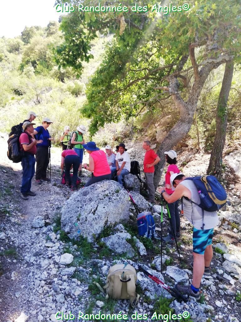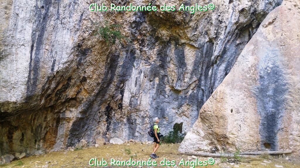 Nous serpentons sur un sentier dans les bois le long d'un cours d'eau à sec (le Rieu) Au niveau de l'Agas, nous trouvons un petit spot d' escalade équipé, nous prenons un chemin ombragé, pour rejoindre la D177 par un court pierrier.