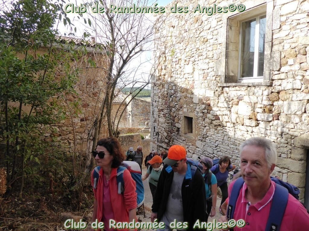 Après un court trajet en sous-bois et une remontée en crête, nous déboucherons sur la petite route de Vallabrix, où nous verrons l’Eglise de style Roman, flanquée d’une tour, le château du XVIII monumental et son jardin à la française à l’abandon, le lavoir…